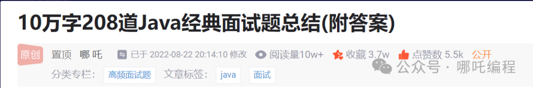 本系列是试题《10万字208道Java经典面试题总结(附答案)》的2024修订版。